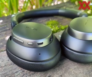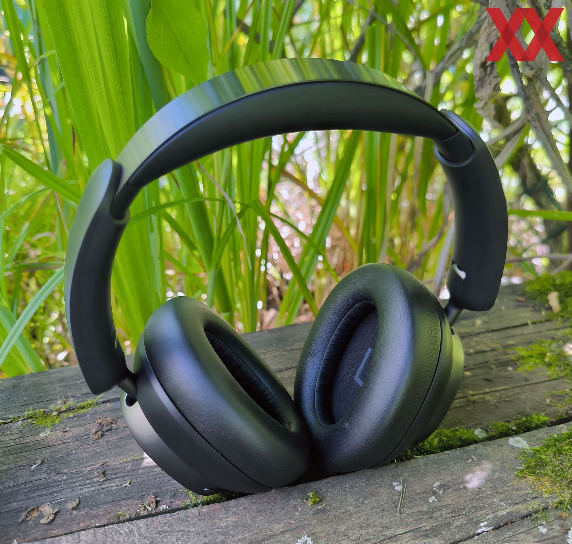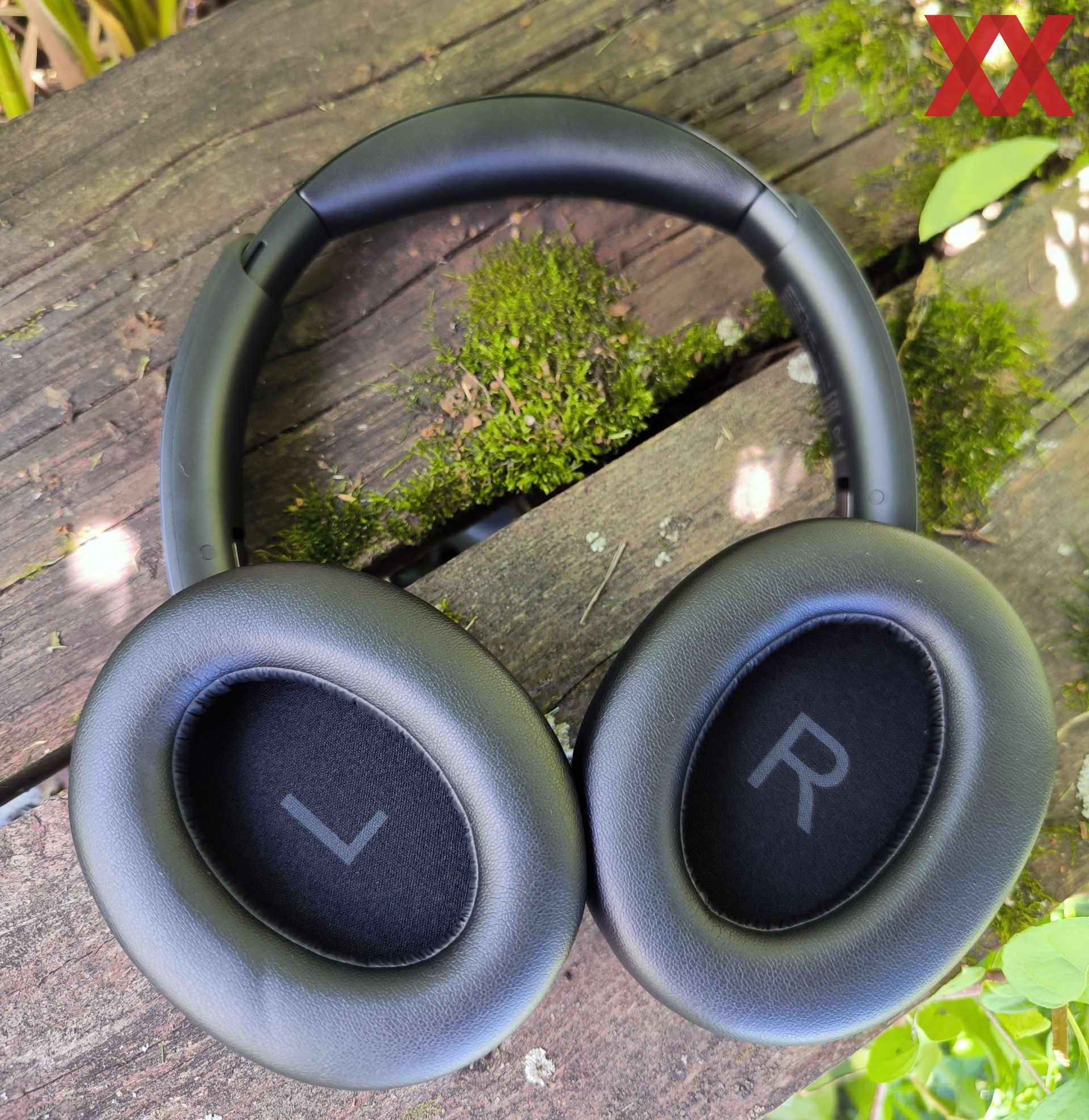 Пассивная изоляция выше средней благодаря овальным амбушюрам с эффектом памяти и плотному прижиму. В результате наушники блокируют шум даже без ANC. Отдельный плюс — удобство при прослушивании лёжа на боку: форма чашек и конструкция оголовья позволяют им оставаться на месте и сохранять герметичность, в отличие от некоторых моделей с круглыми амбушюрами (например, Anker Q30), которые в таком положении смещаются и теряют плотное прилегание.