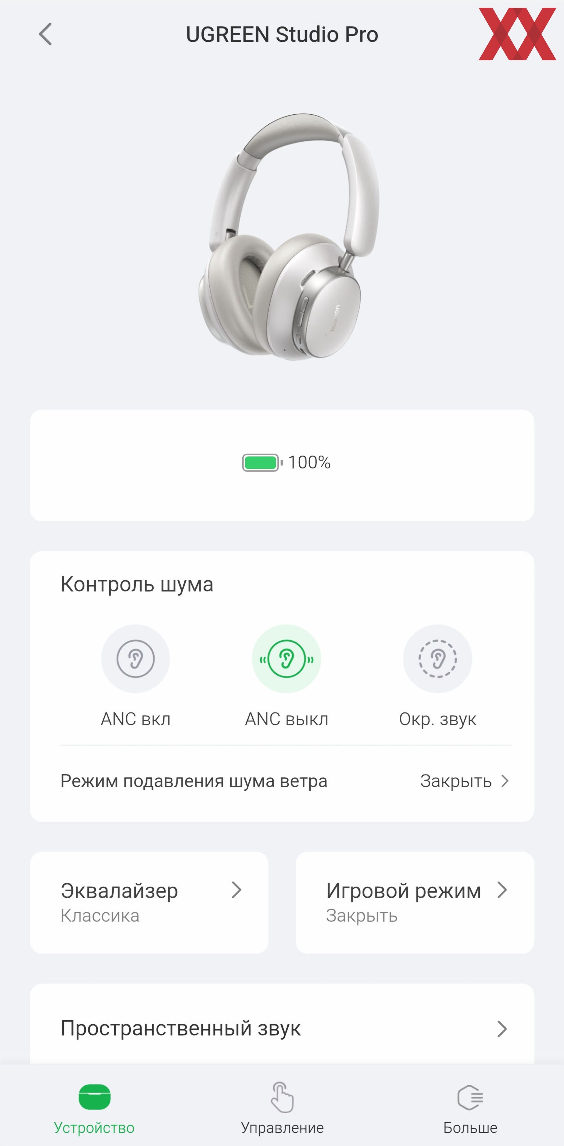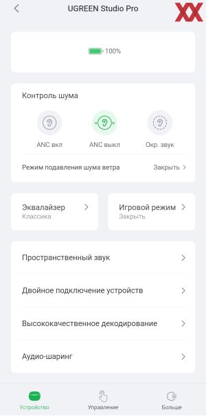 Ugreen Studio Pro — редкий пример бюджетной модели, сочетающей двухполосную акустику, поддержку LDAC и автономность свыше ста часов. Взамен придётся смириться с отсутствием ручного эквалайзера и упрощённым режимом прозрачности.